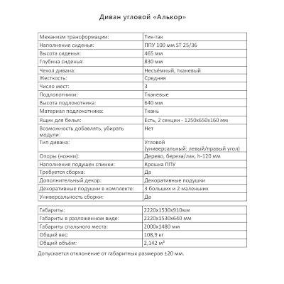Угловой диван Алькор (Аквилон) продается в интернет-магазине mebelin-krasnogorsk.ru по цене 77 962 руб. Есть доставка по Красногорску и Московской области. Возможность подъема на этаж и сборки уточняйте у менеджера по телефону 8(800)505-27-11.