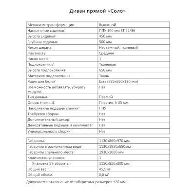 Диван Соло (Аквилон) продается в интернет-магазине mebelin-krasnogorsk.ru по цене 27 077 руб. Есть доставка по Красногорску и Московской области. Возможность подъема на этаж и сборки уточняйте у менеджера по телефону 8(800)505-27-11.